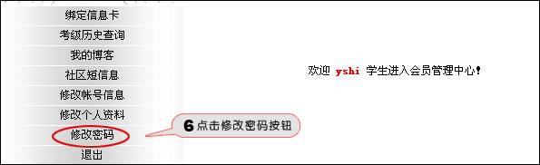 3) 进入会员中心后,请点击修改密码,按照页面提示进行修改。