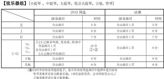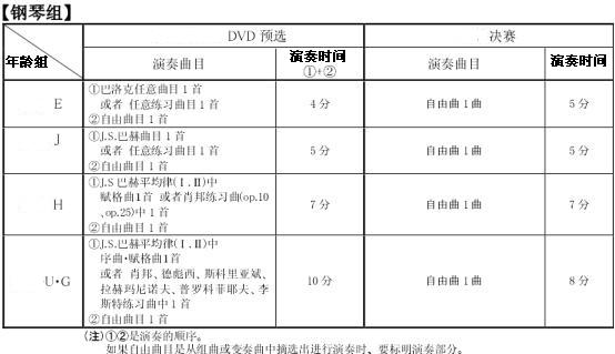 参赛资格 钢琴和弦乐器:E组至G组 / 管乐器和声乐:J组至G组