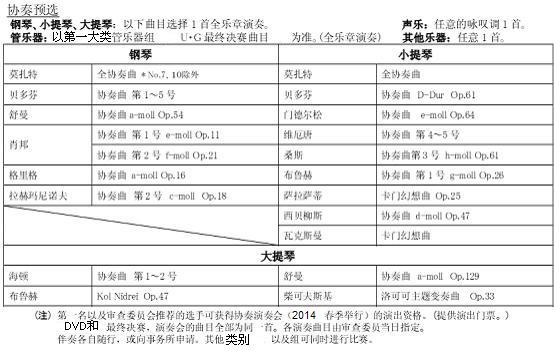 协奏预选: 钢琴、弦乐器、管乐器、声乐