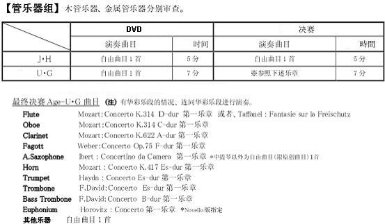 (注)曲目的编排也属审查对象。演奏会的曲目依照编排的曲目进行。 其他:自由曲目。